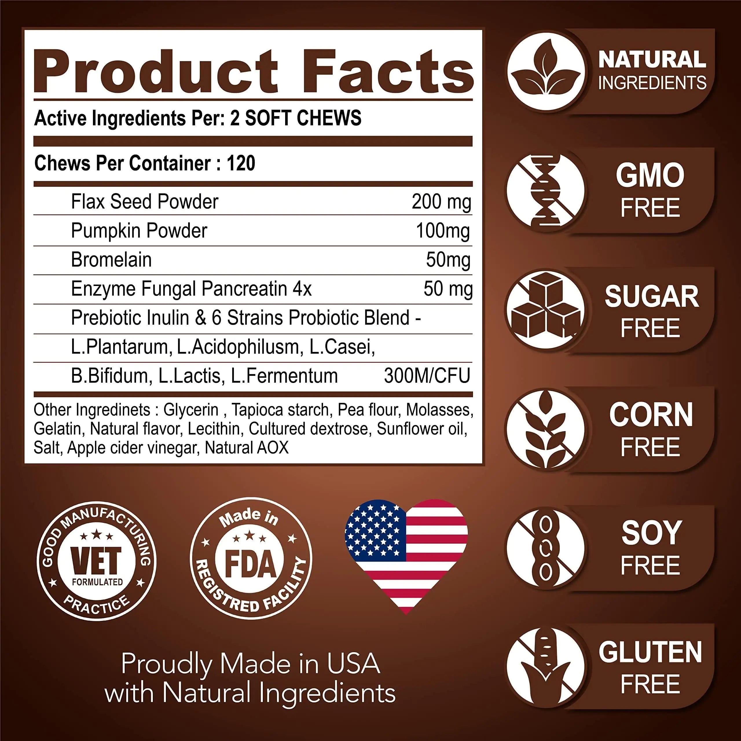 Great Poop Probiotics for Dogs, High in Fiber 120 Chews